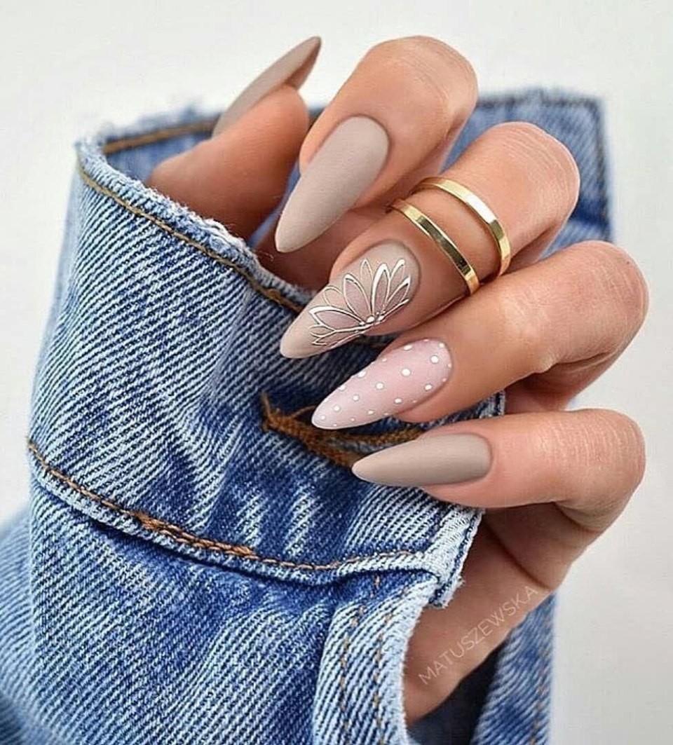 Маникюр на миндалевидные ногти 2020 осень