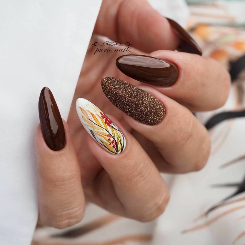 Осенний маникюр коричневый