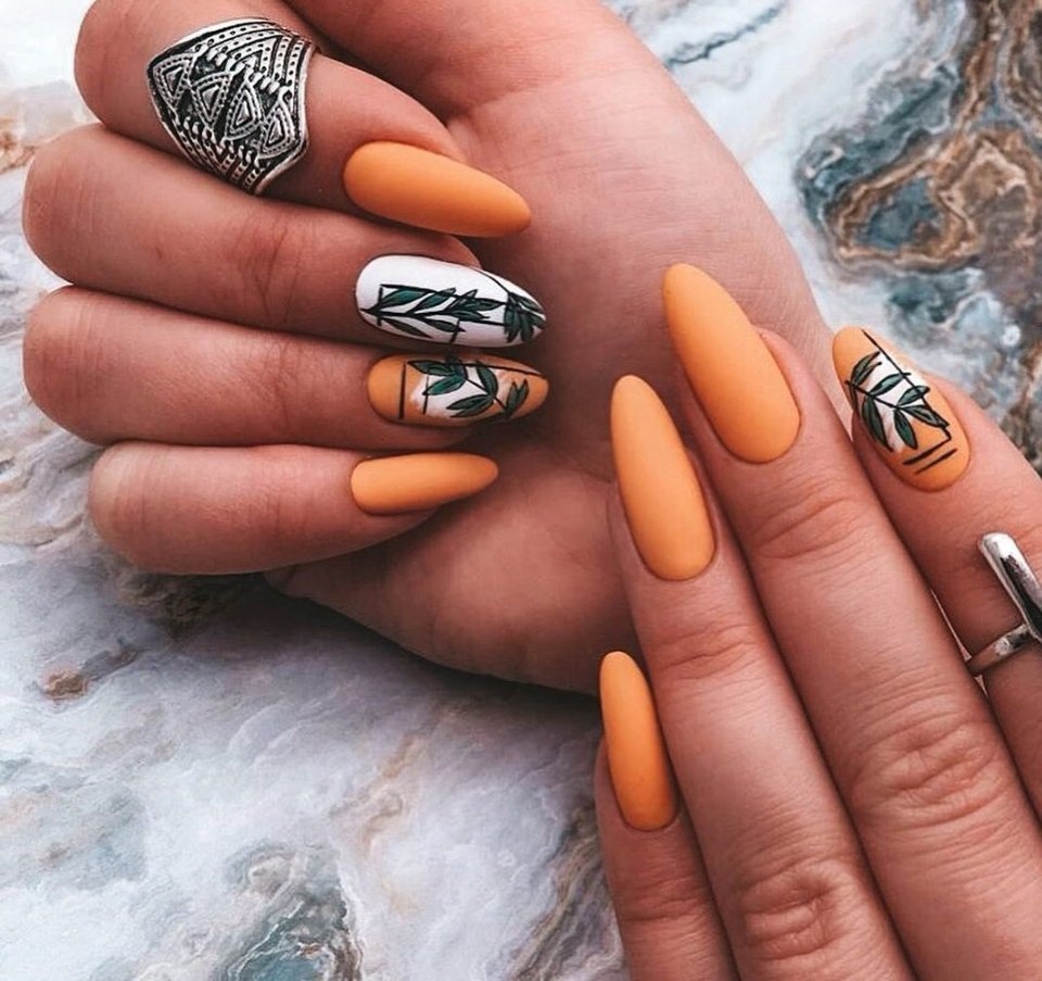 Маникюр осень оранжевый