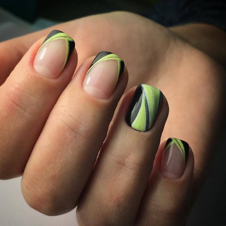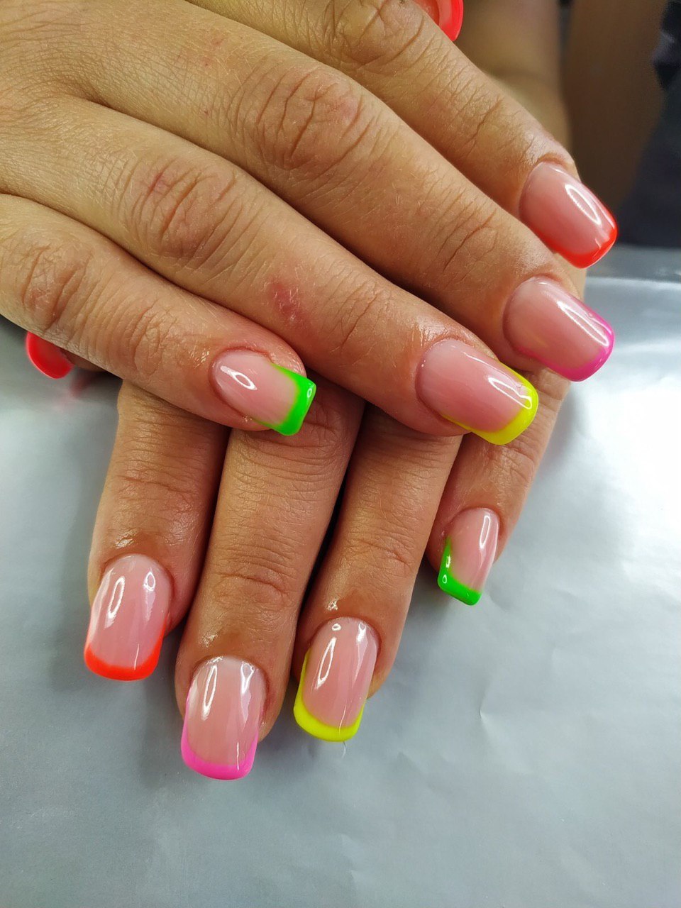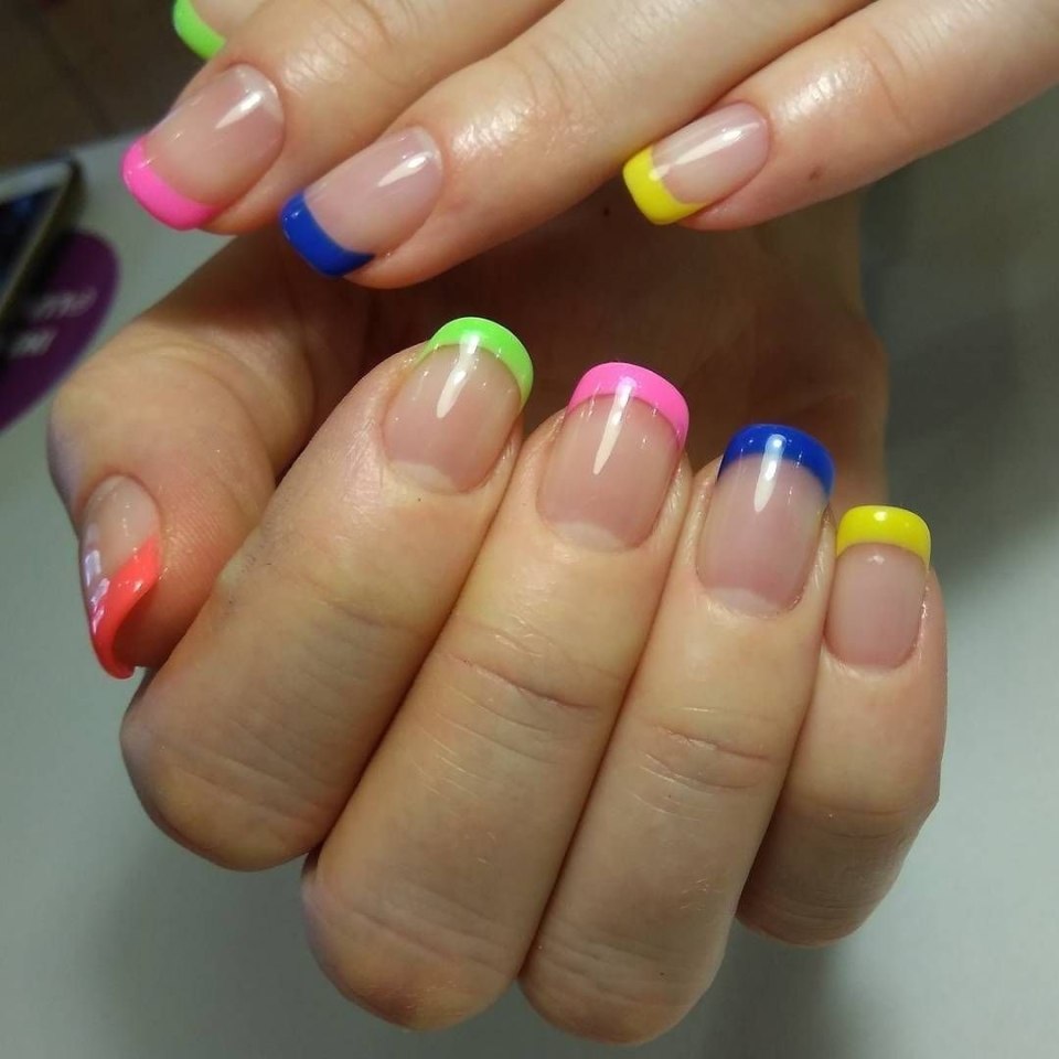 Маникюр френч цветной комбинированный квадрат (72 фото)