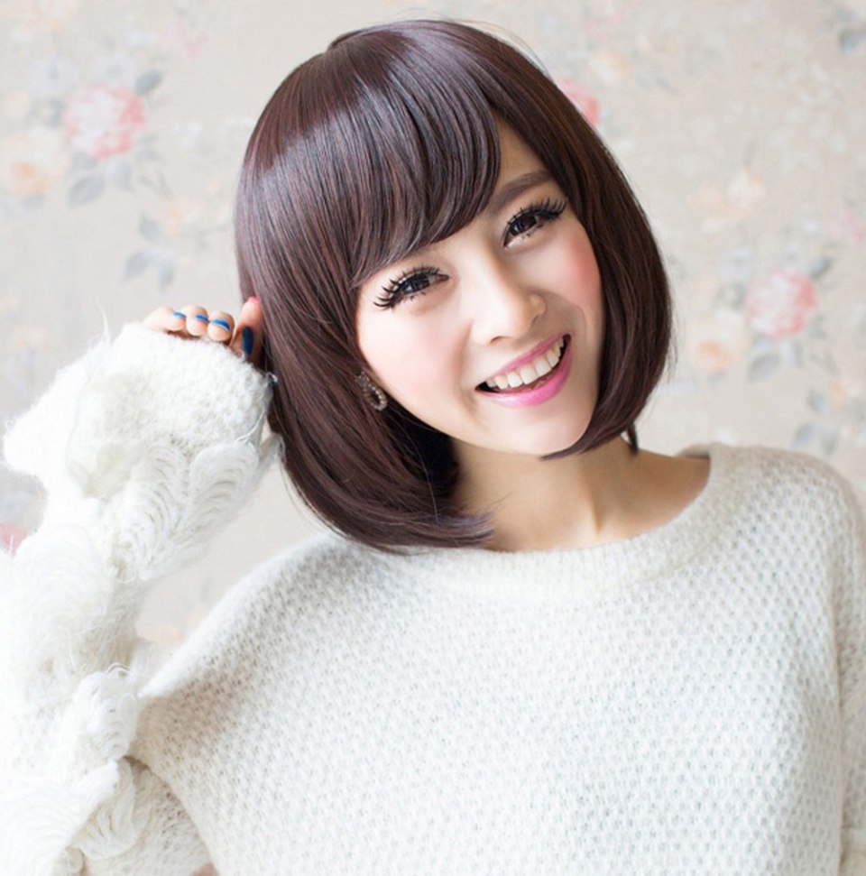 Каре с белой челкой и коричневыми волосами (74 фото)