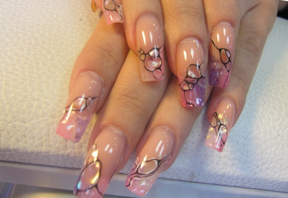 Аквадизайн нарощенных ногтей гелем