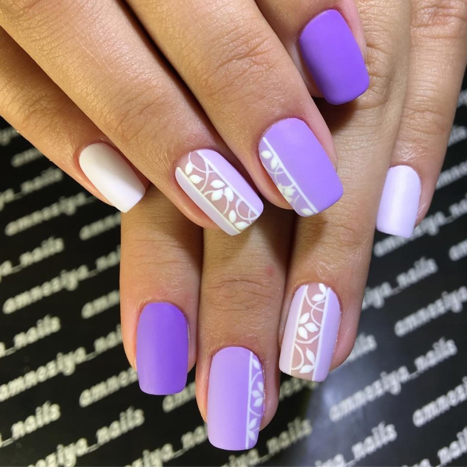Маникюр сиреневый с белым