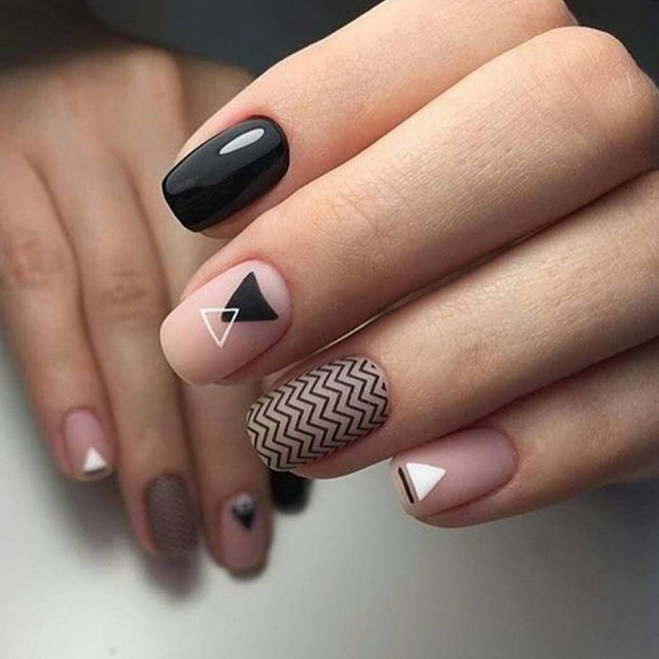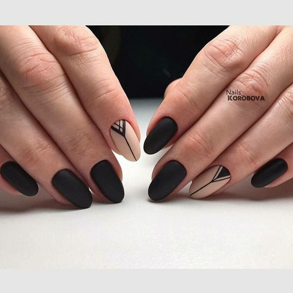Черно бежевый матовый маникюр (77 фото)