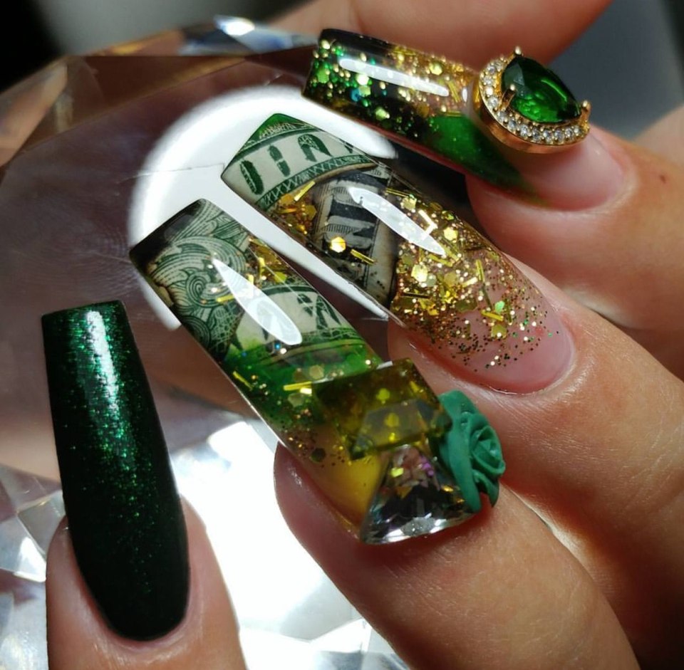 Ногти зелёный с золотом