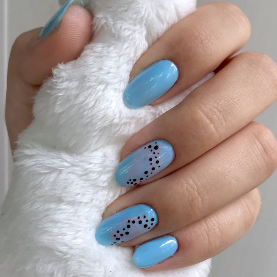 Голубой маникюр с точками