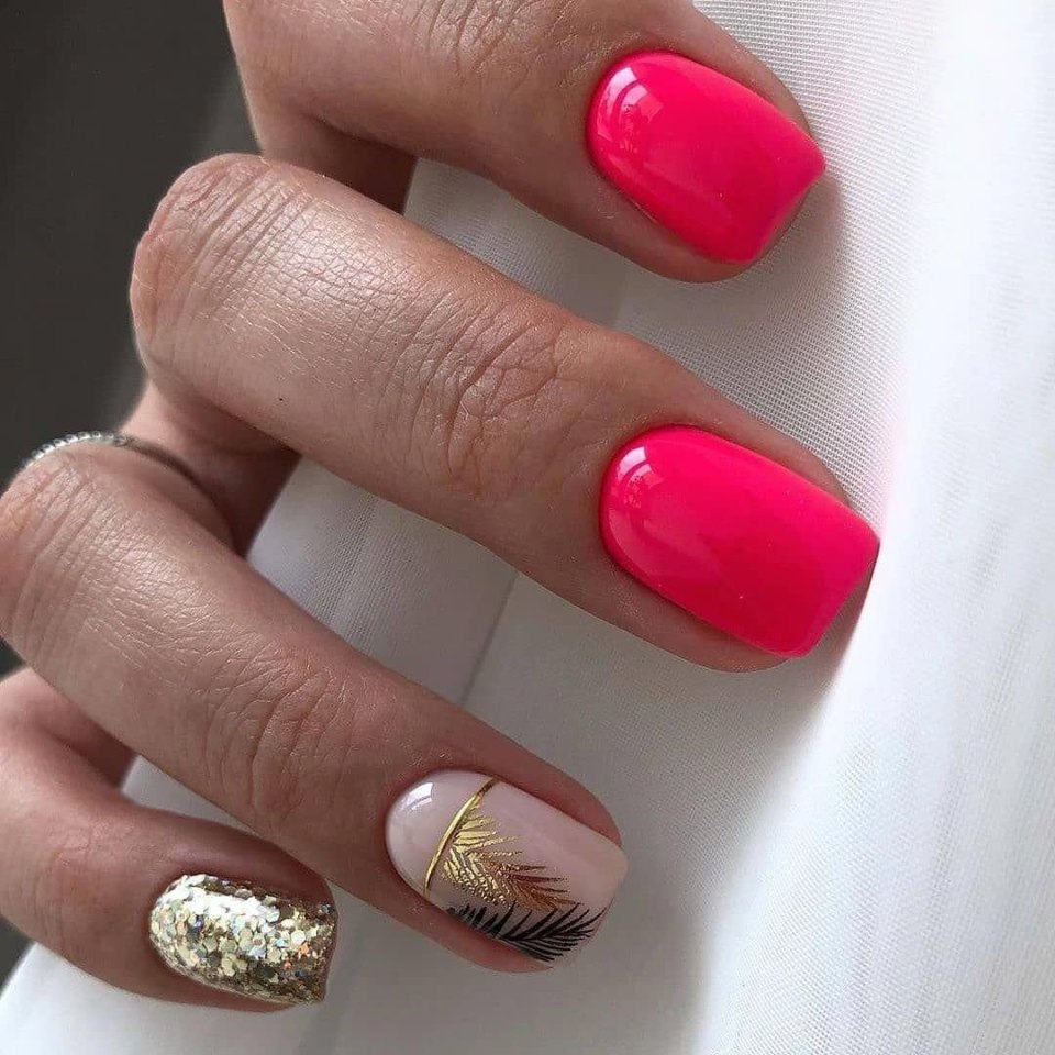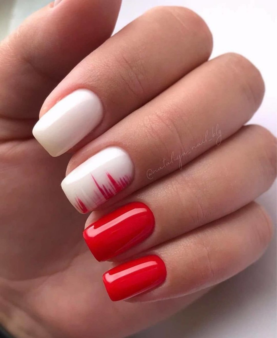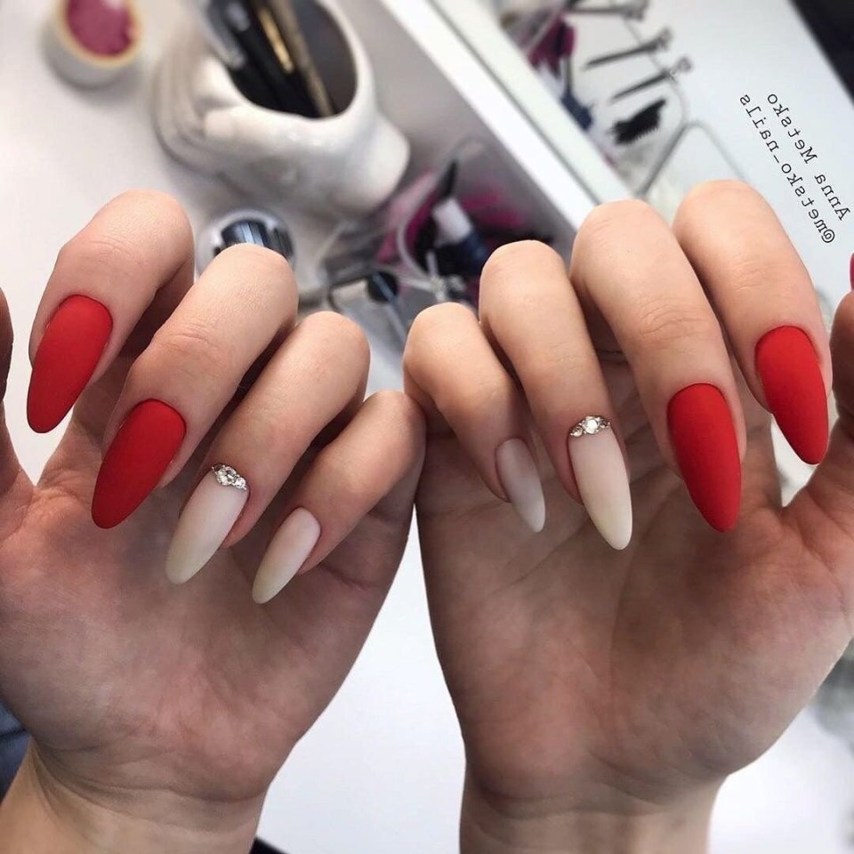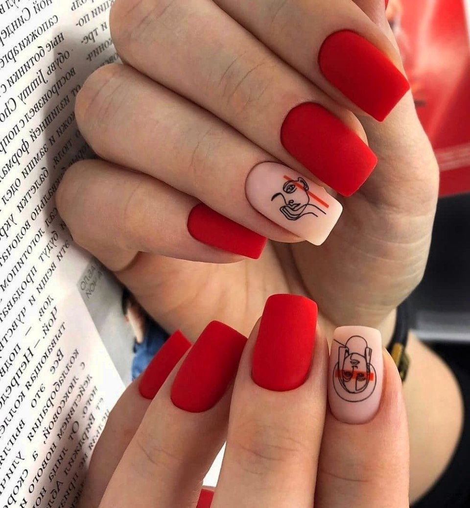 Красный маникюр 2021 модные новинки на одном пальце перо