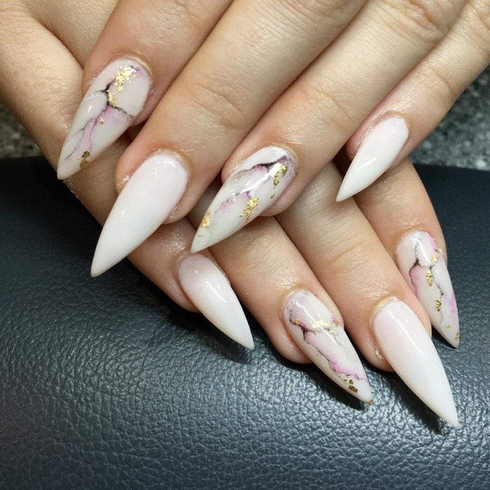 Маникюр на острые ногти мрамор