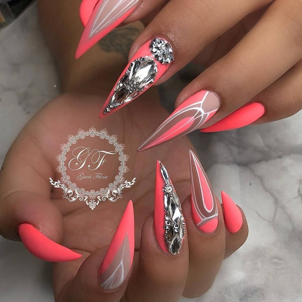 Красивые коралловые ногти острые