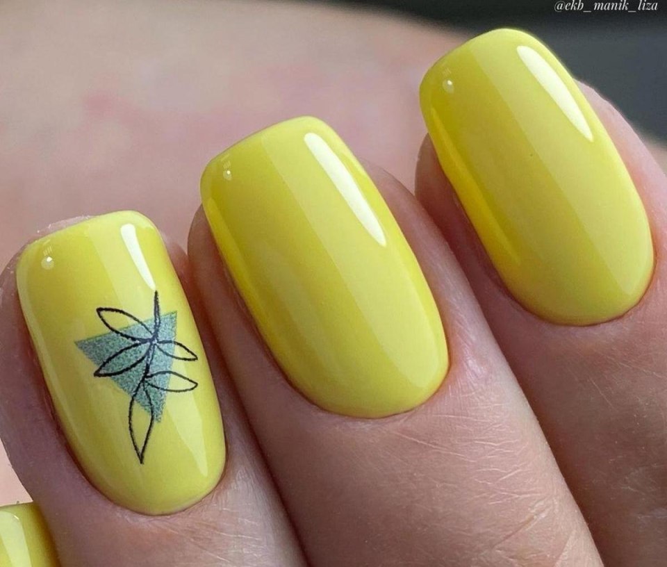 Жёлтый маникюр на короткие