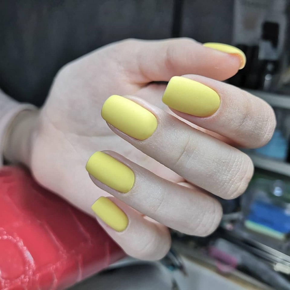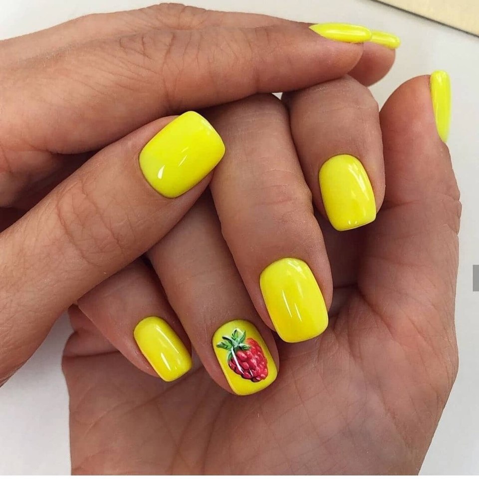 Жёлтый маникюр на короткие ногти квадратной
