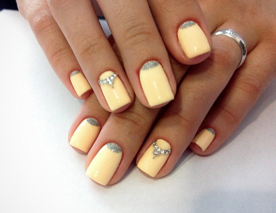 Бледно желтый маникюр на короткие ногти (74 фото)