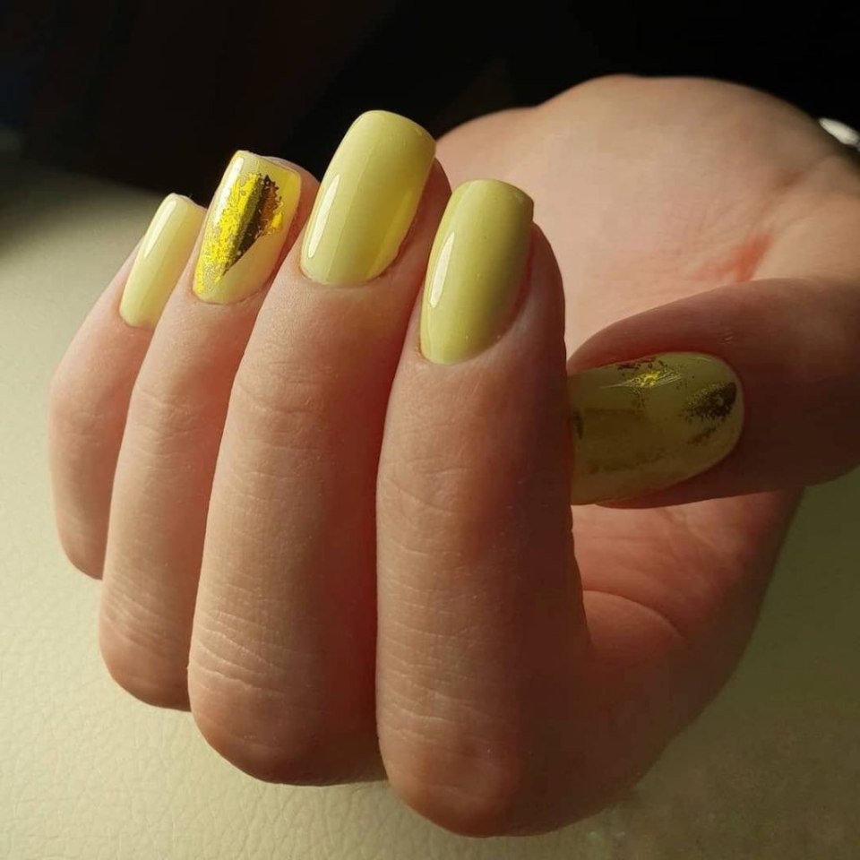 Маникюр желтый с золотым