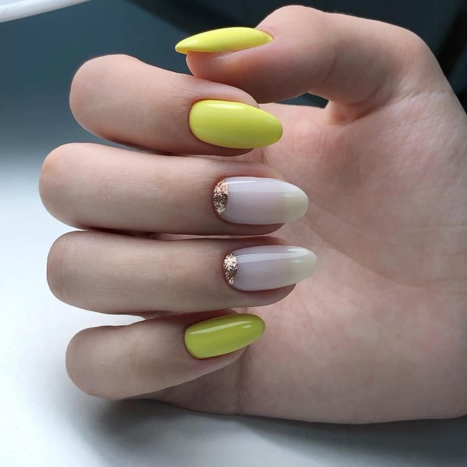 Маникюр 2021 желтый перепелиное яйцо фото