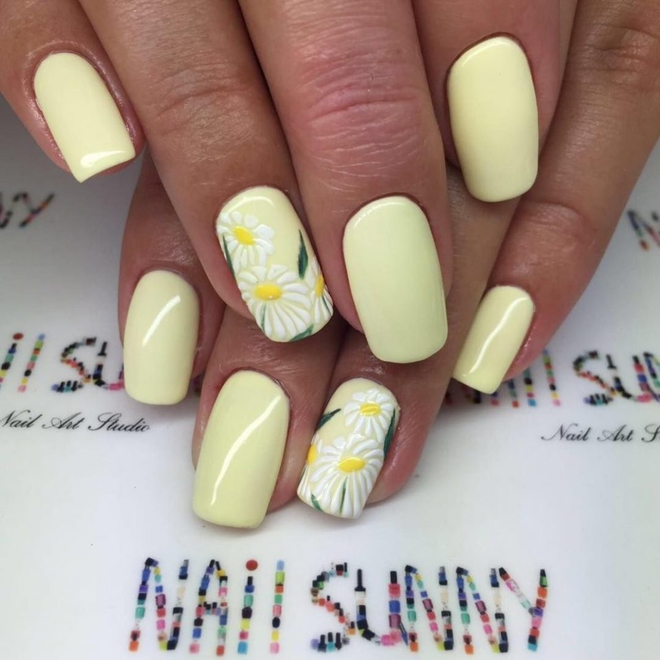 Пастельно желтый маникюр