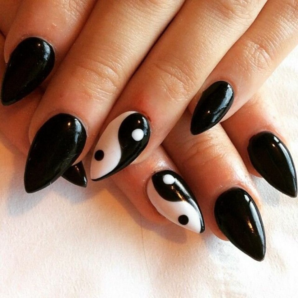 Маникюр Инь Янь фото на длинные ногти