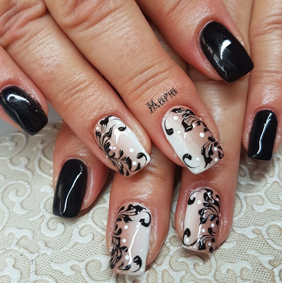Дизайн ногтей черный с росписью