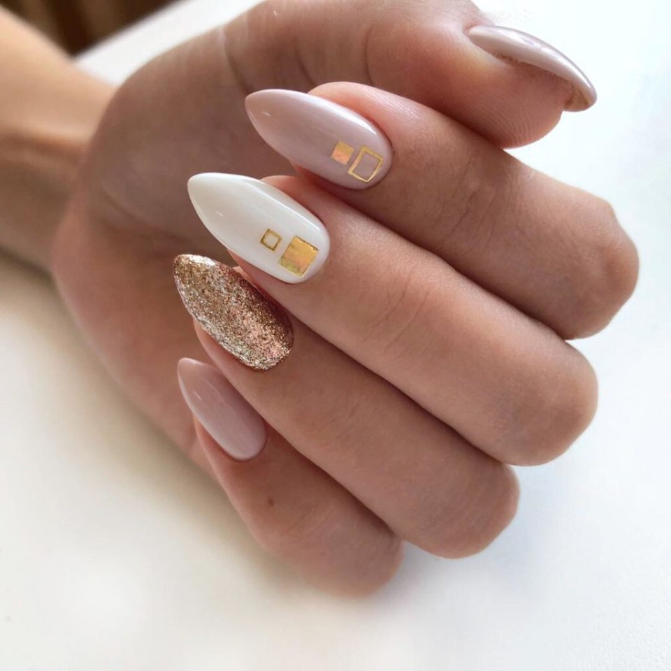 Нюдовый маникюр 2021 миндаль с фольгой