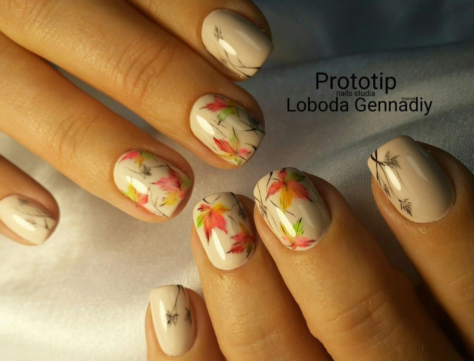 Осенний маникюр с листочками