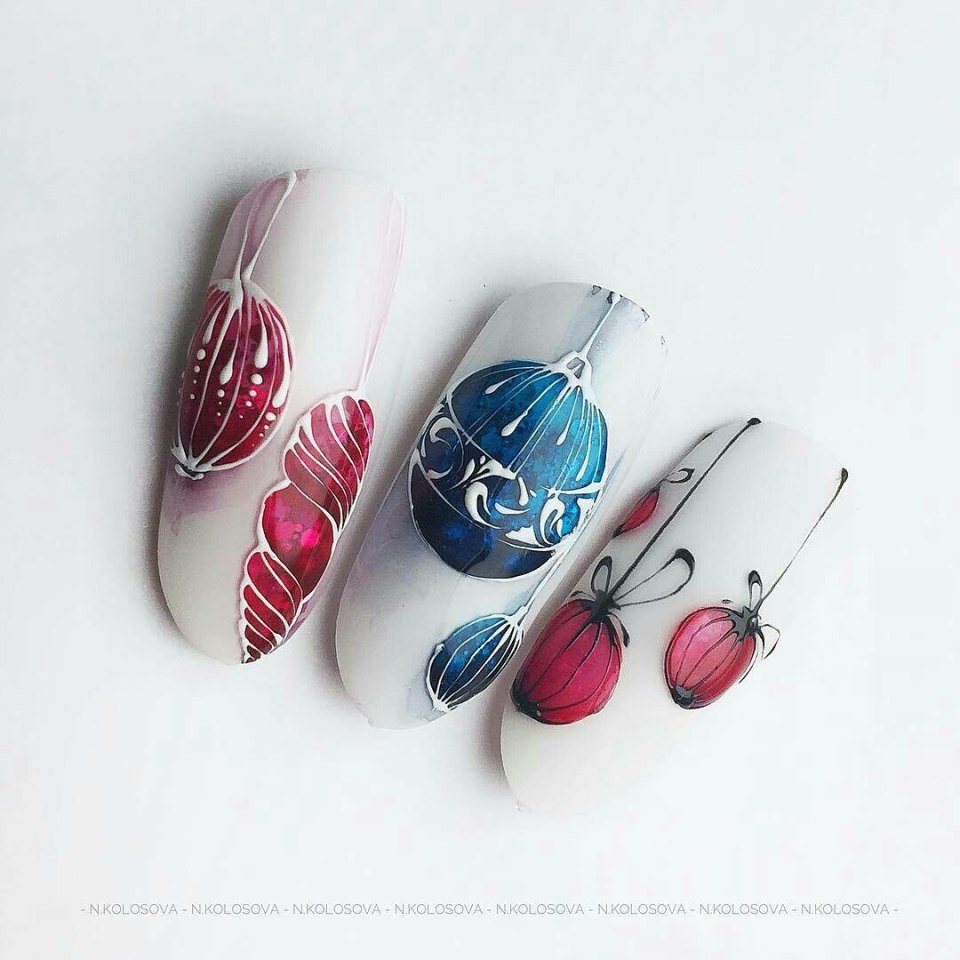 Елочная игрушка на ногтях