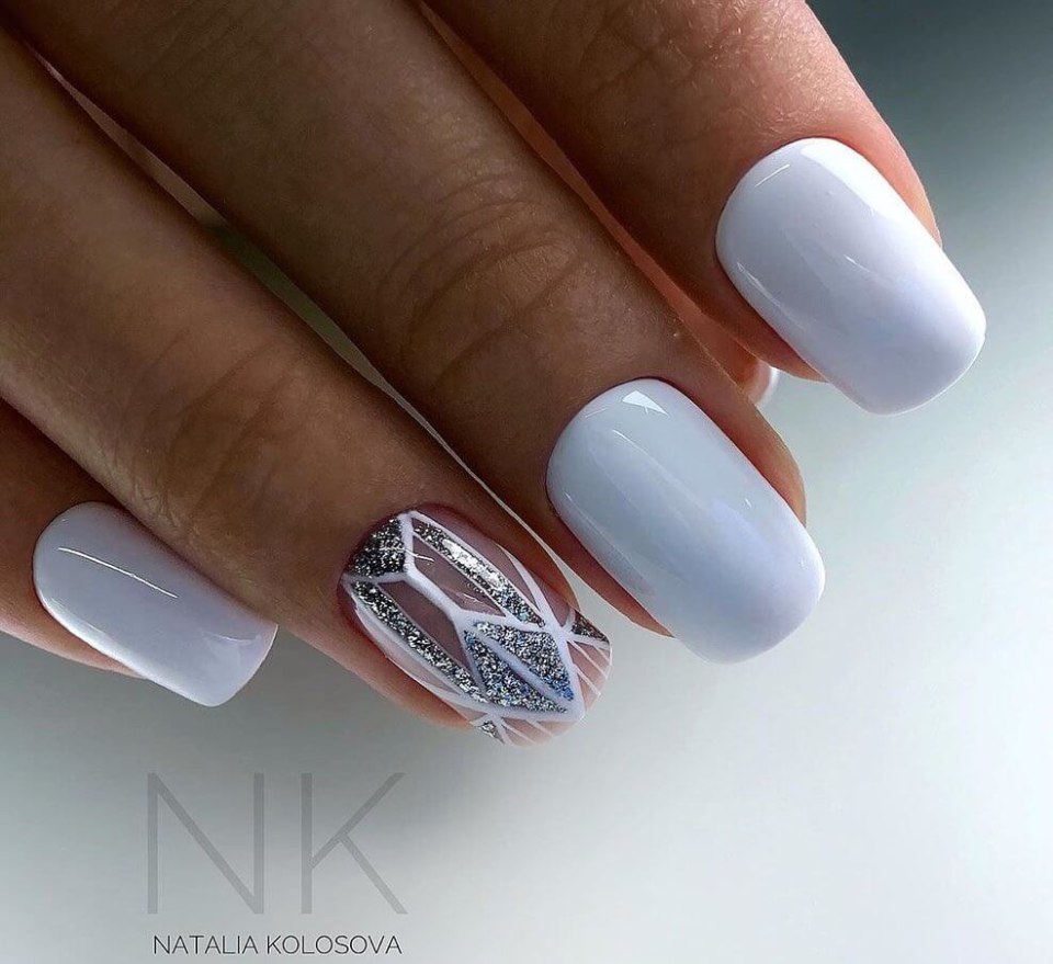 Белый новогодний маникюр 2020