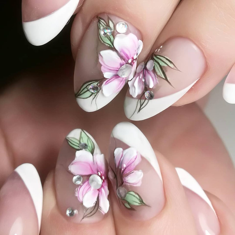 Маникюр стеклянные цветы