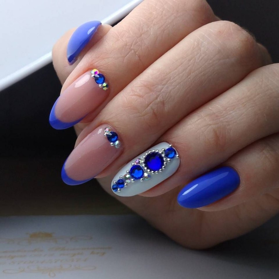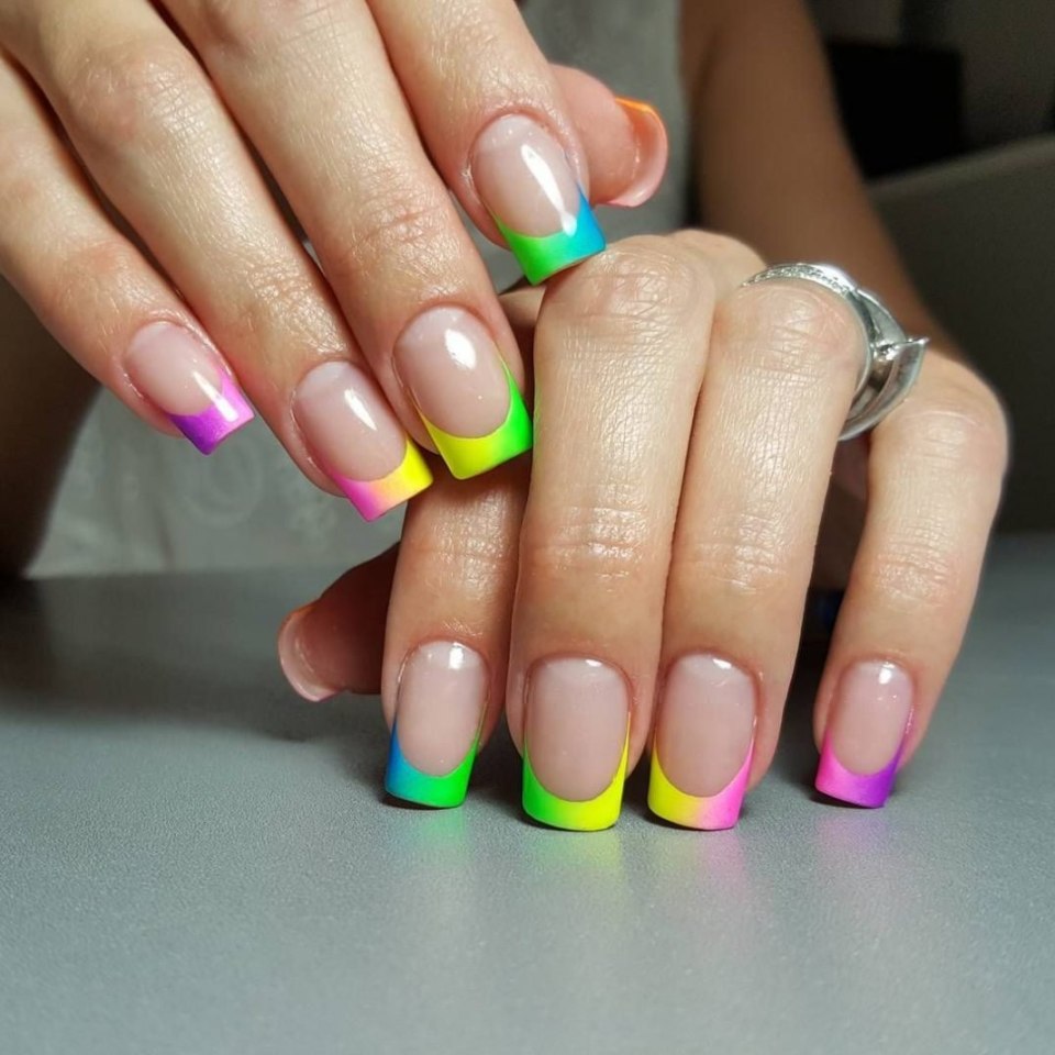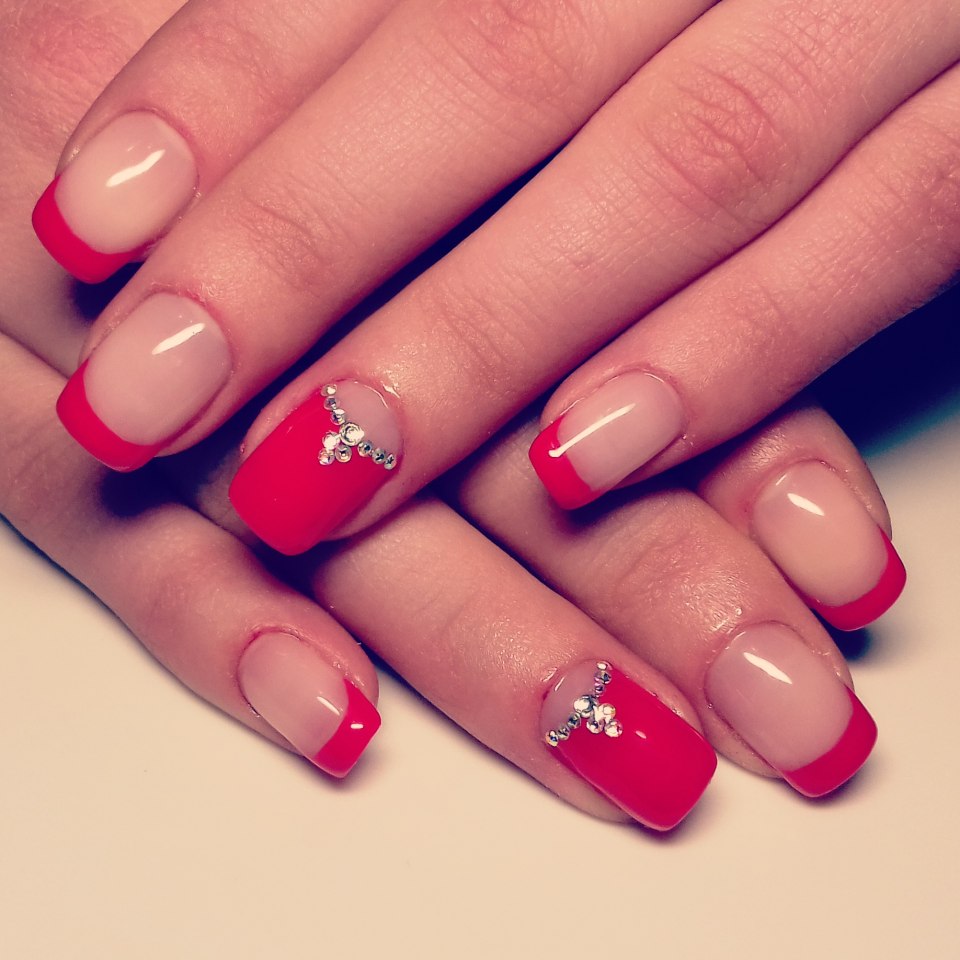 Маникюр дизайн френч цветной со стразами (76 фото)