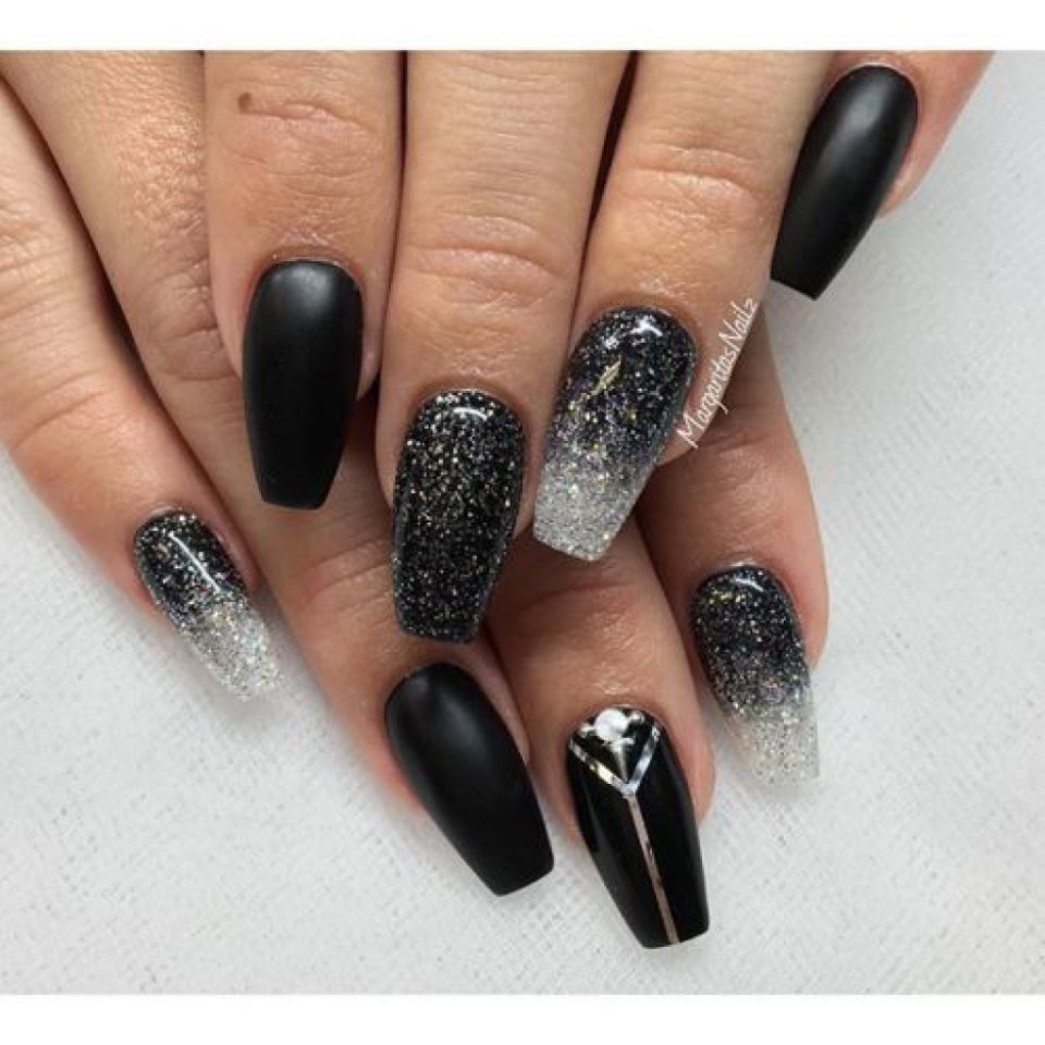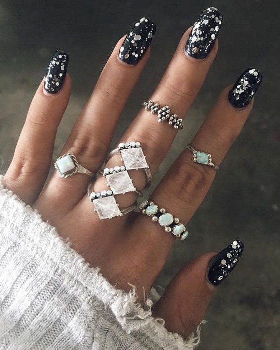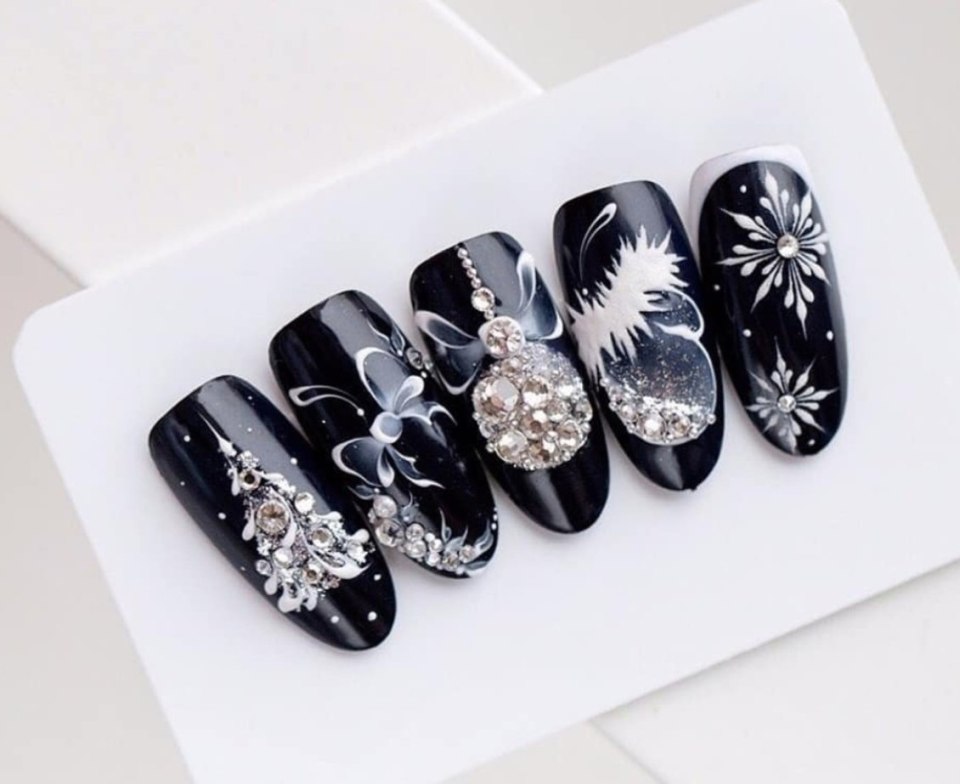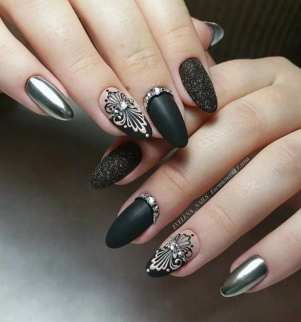 Дизайн ногтей черный с серебром и стразами (78 фото)