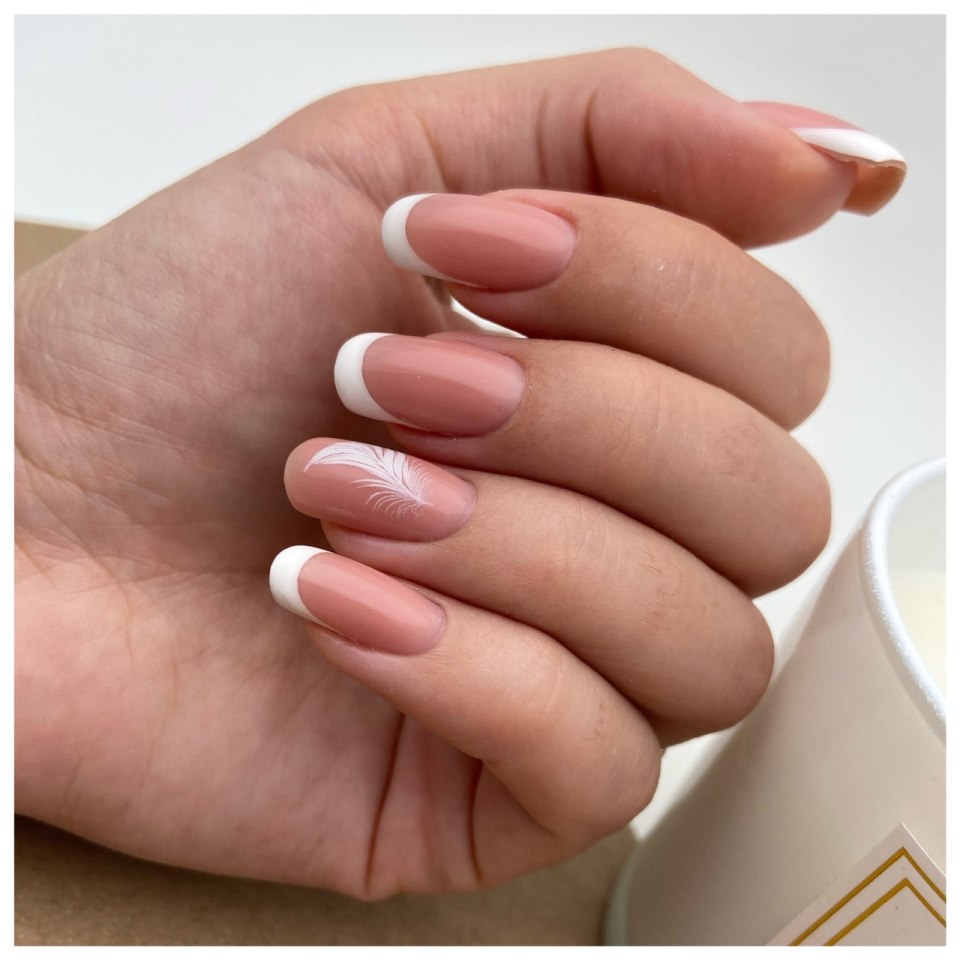 На одной руке френч на второй однотонное покрытие на ногтях (53 фото)