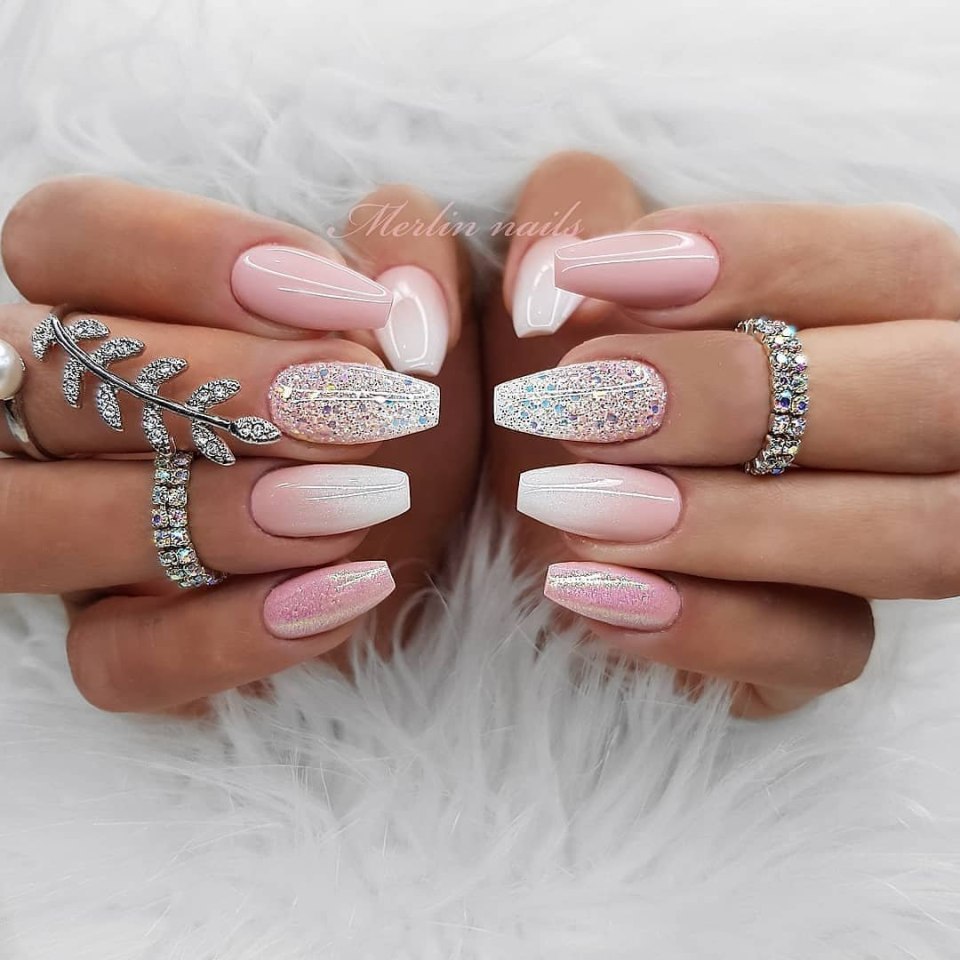 Белые ногти с блестками