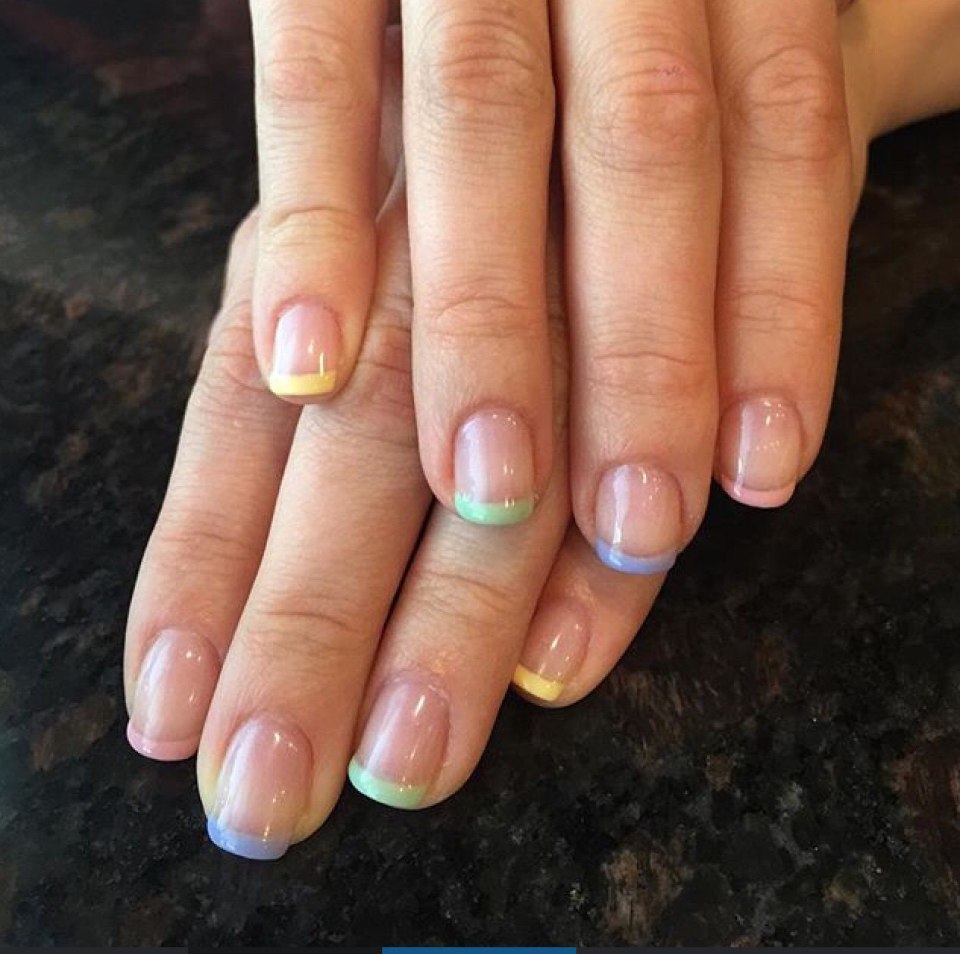 Отросший френч на прозрачном фоне на ногтях (75 фото)
