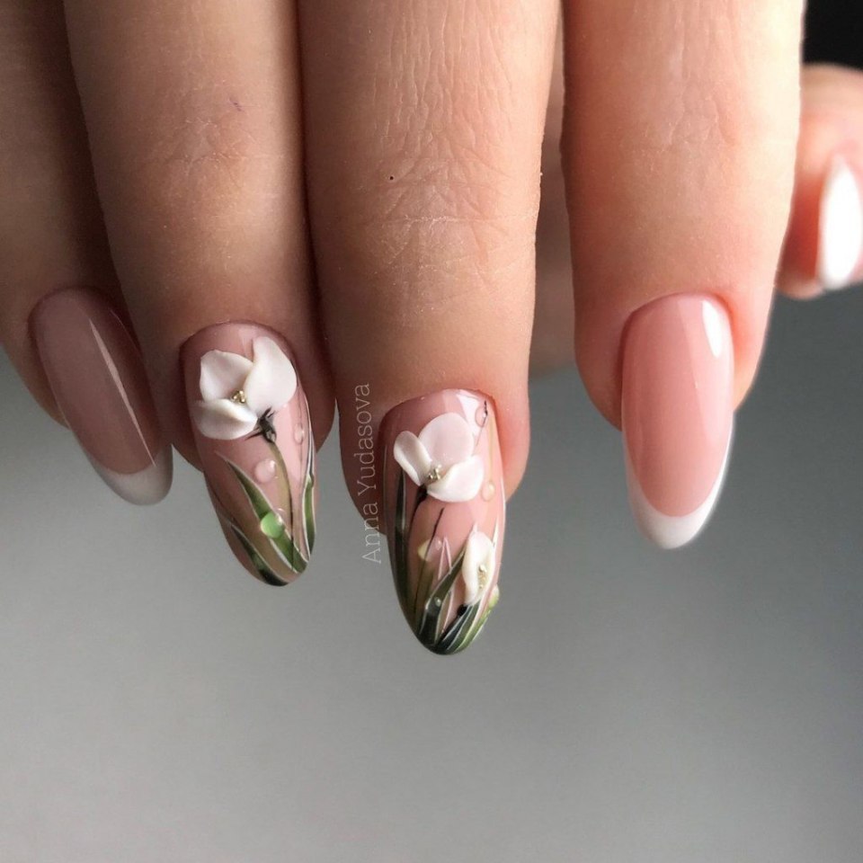 Маникюр с объемными цветами