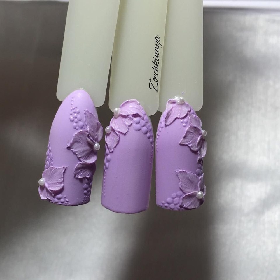 Фиолетовый маникюр с лепкой