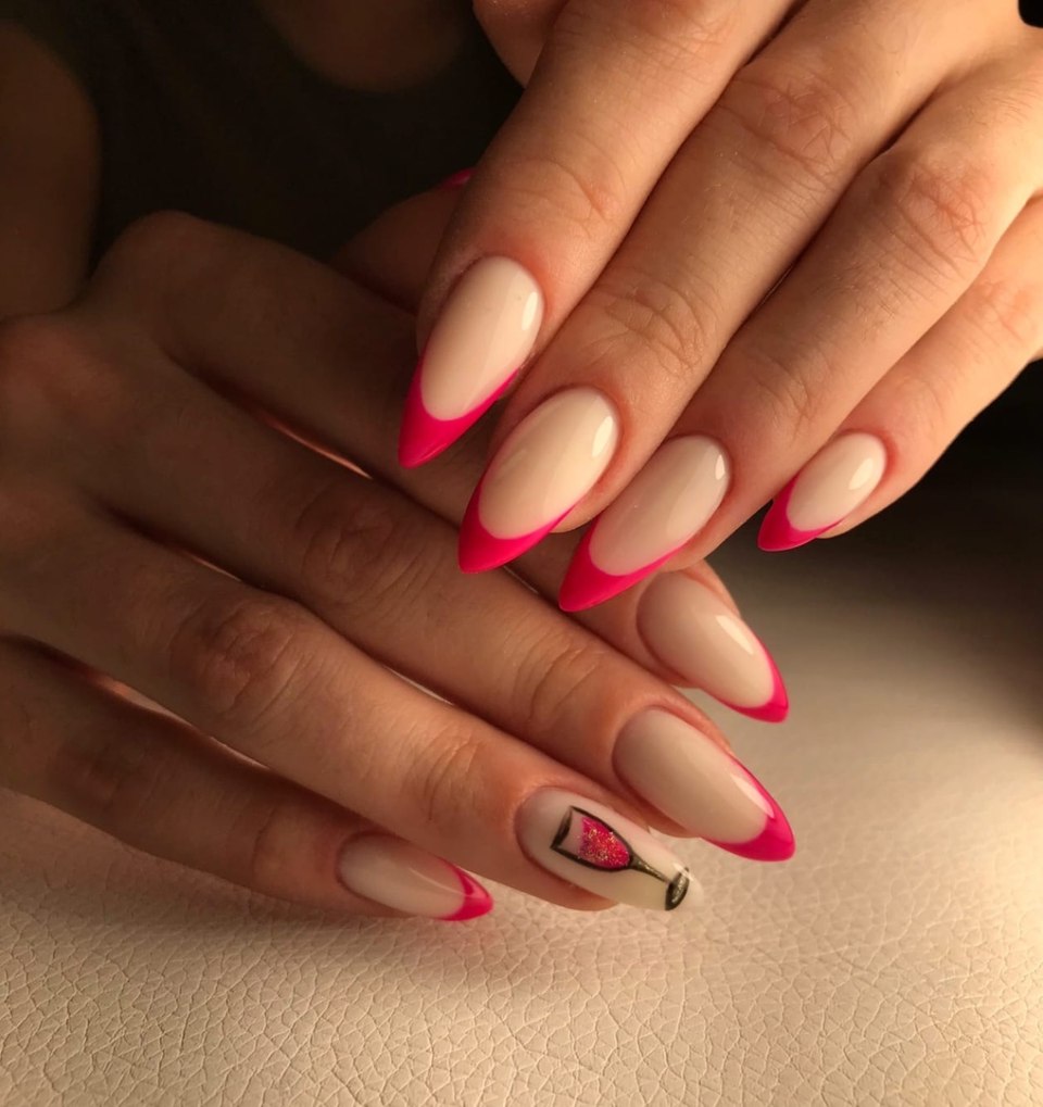 Ярко розовый френч