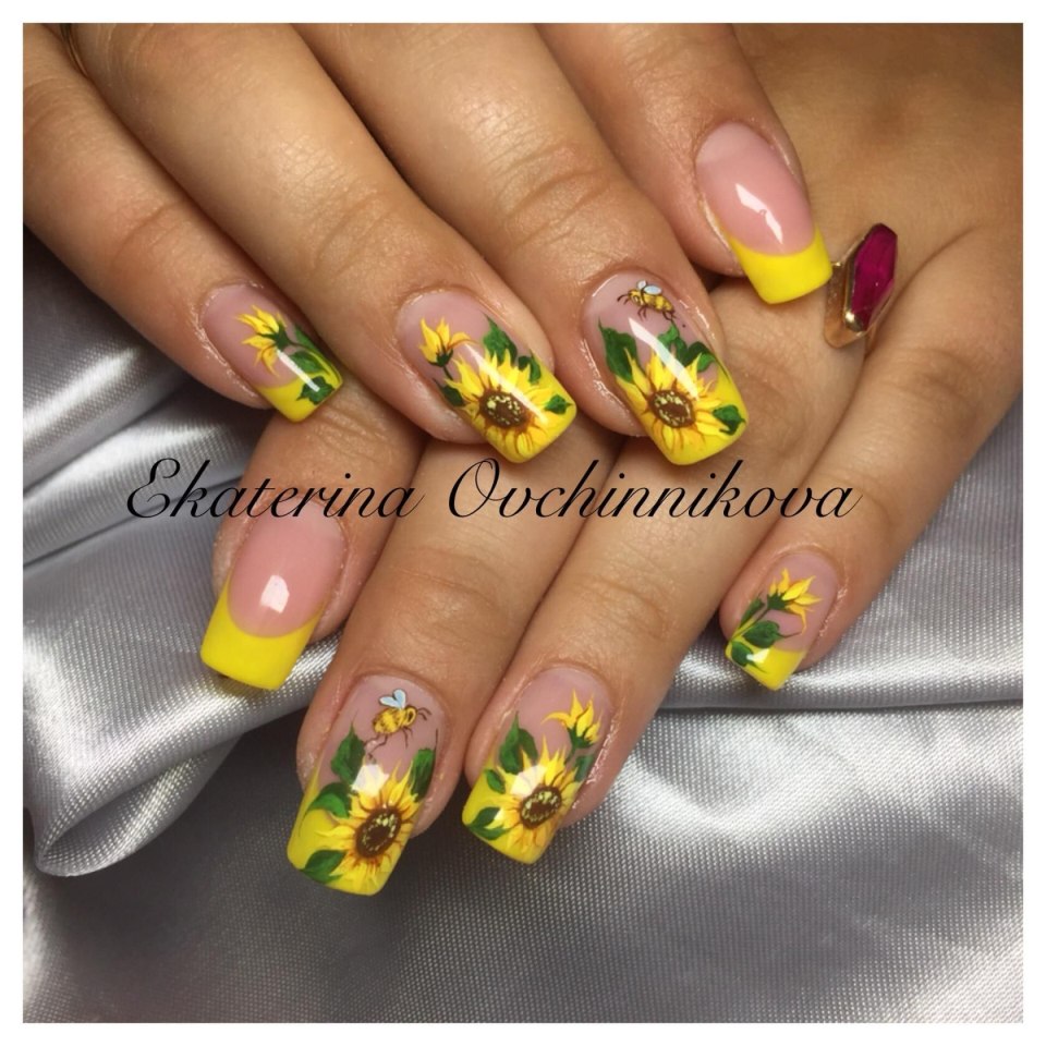 Маникюр подсолнухом френч