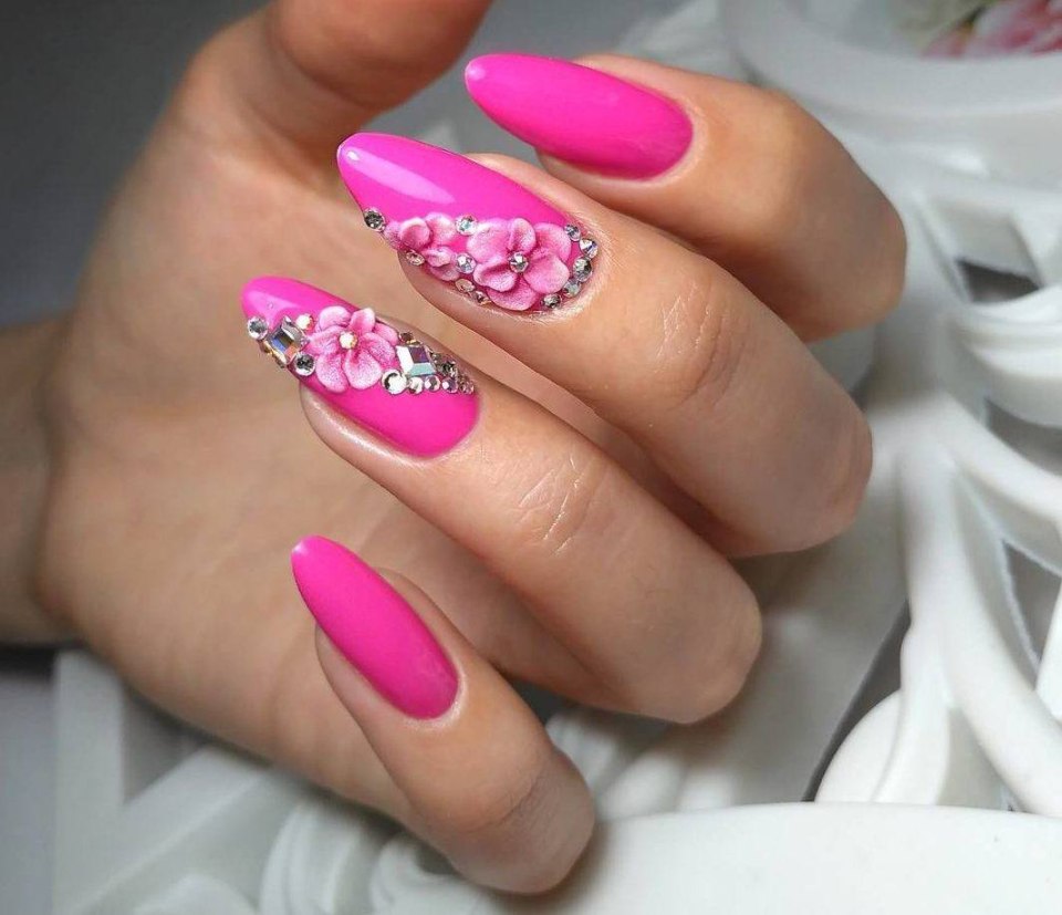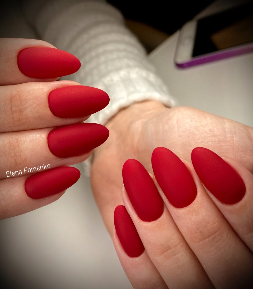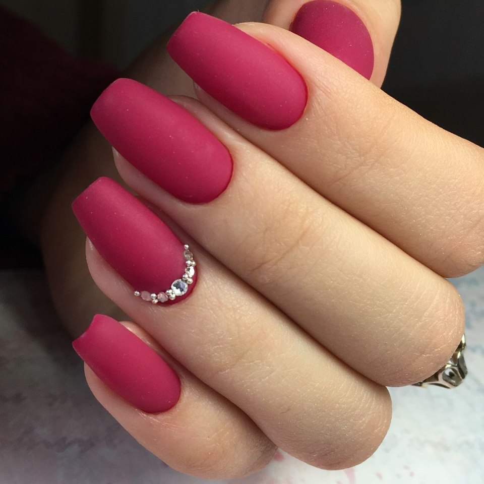 Маникюр летний однотонный элегантный в ягодном цвете (68 фото)