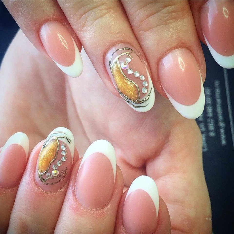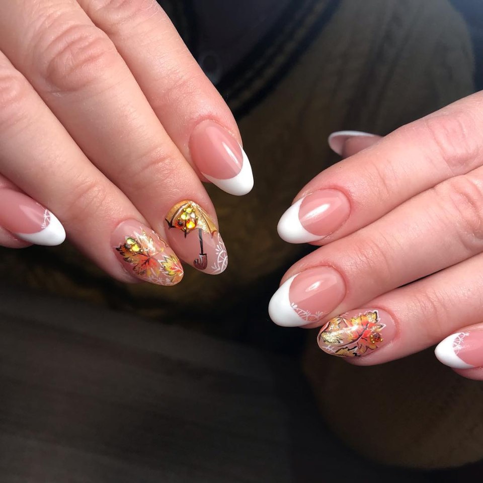 Френч на миндалевидных ногтях с дизайном 2020 осень