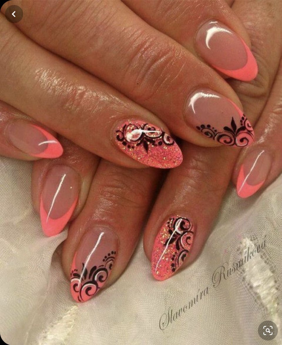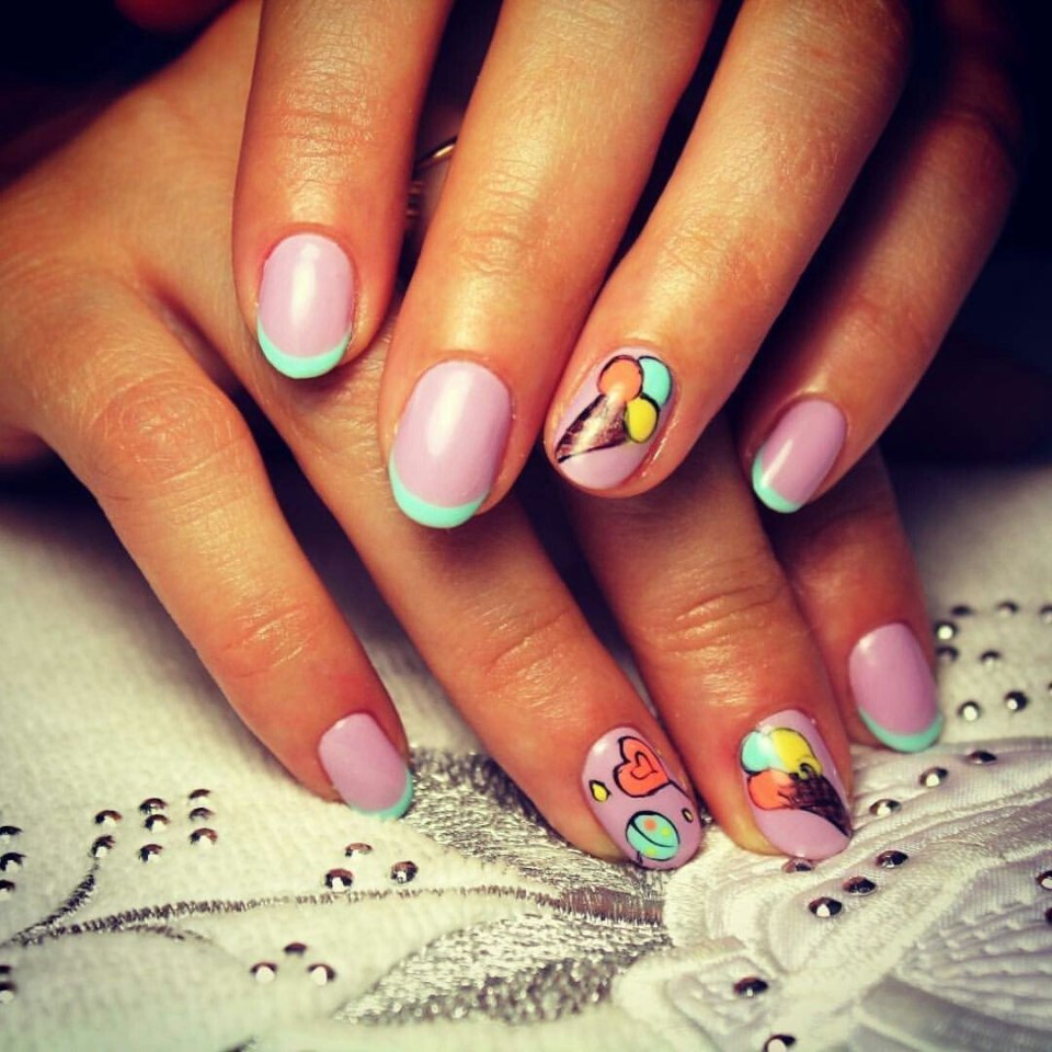 Летний френч на ногтях с рисунком на овальных ногтях (75 фото)