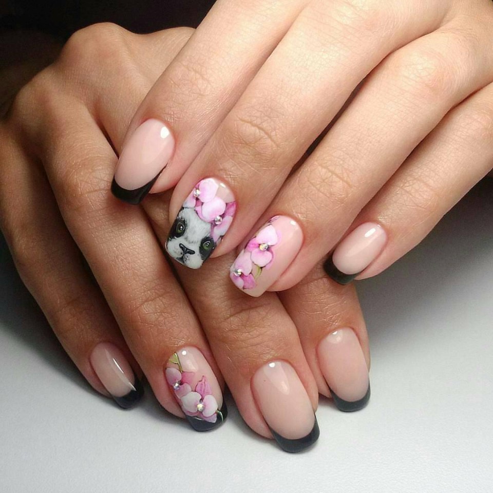 Французский маникюр с цветами
