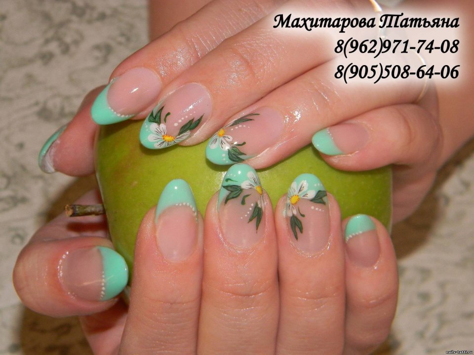 Французский маникюр с цветочками