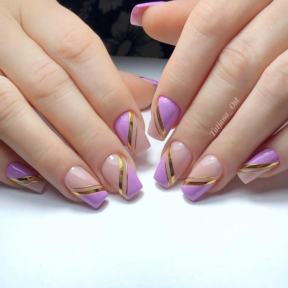 Маникюр дизайн новинки красивые элегантные с рисунком на квадратных ногтях (74 фото)