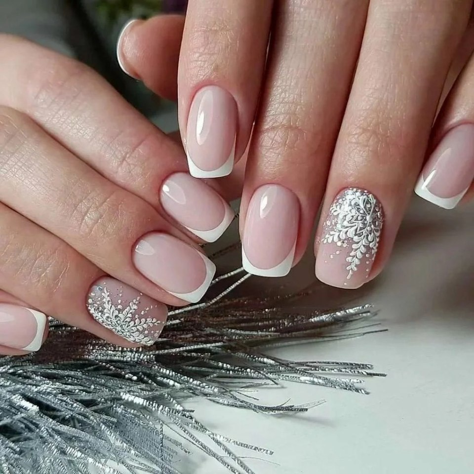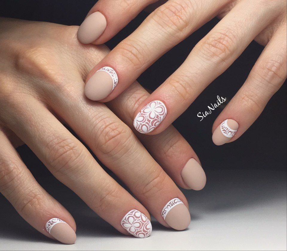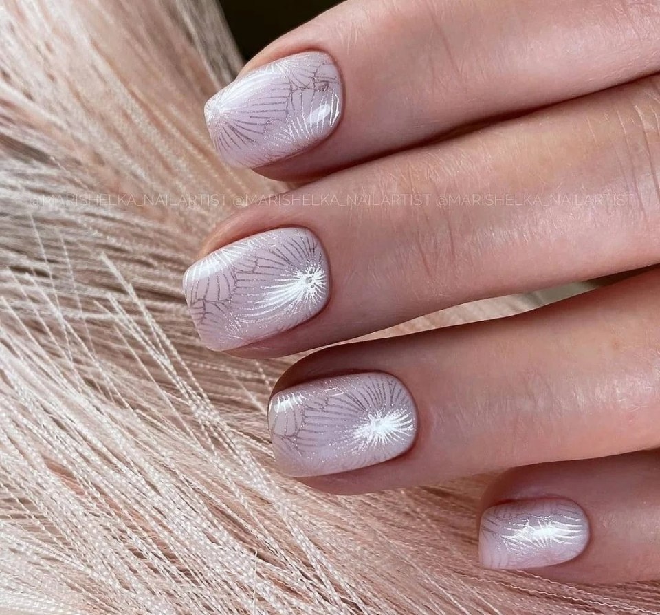 Маникюр 2021 на короткие ногти зимний нюдовый