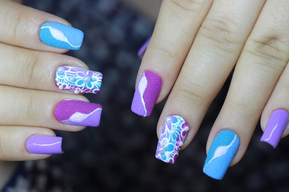 Маникюр голубой с фиолетовым