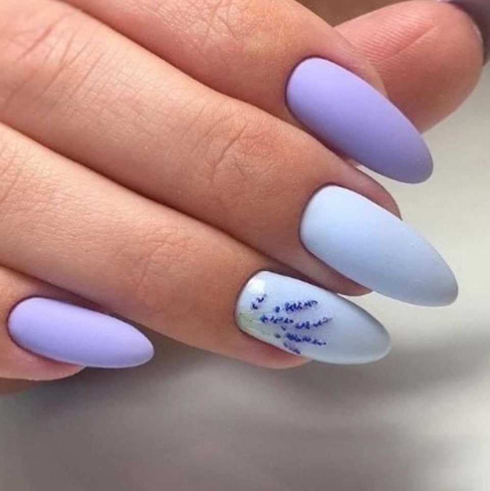 Лавандовый маникюр на миндалевидных ногтях