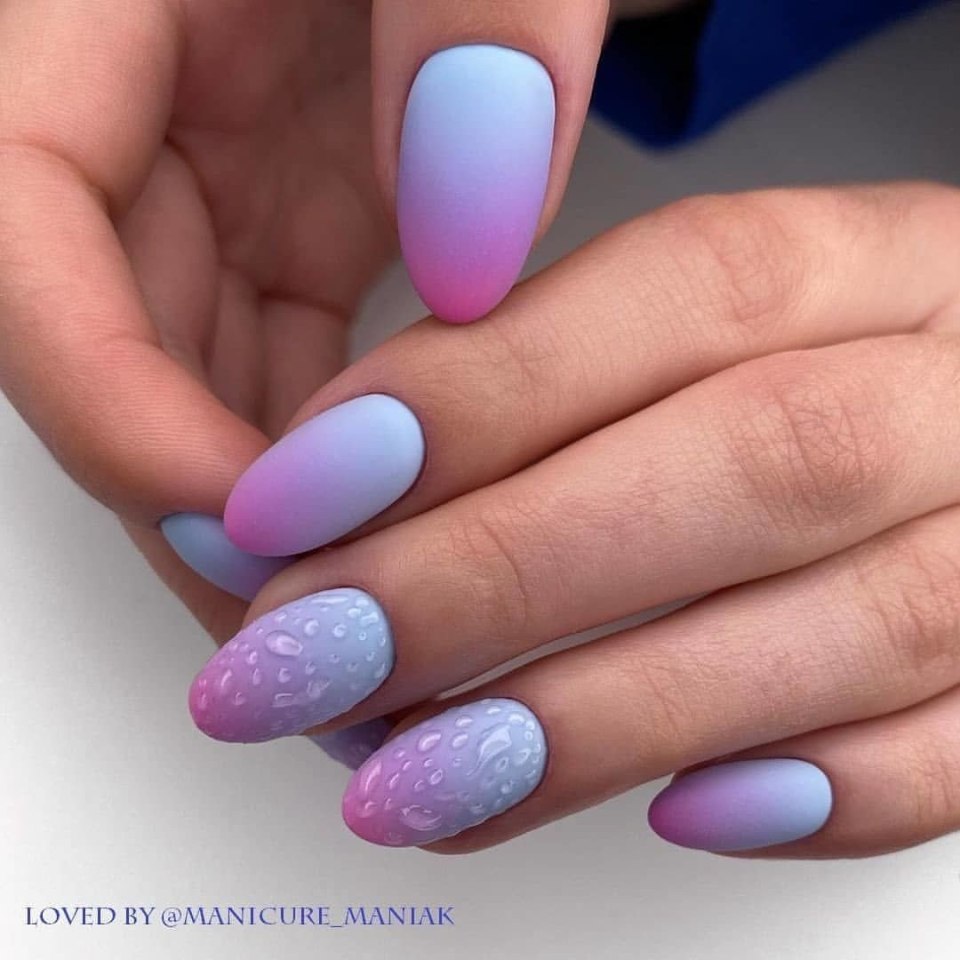 Розовый с голубым маникюр миндальные ногти