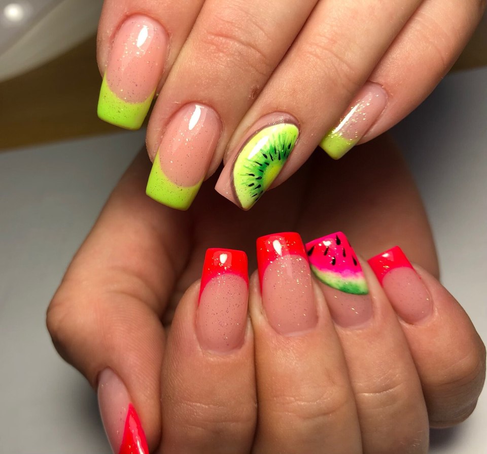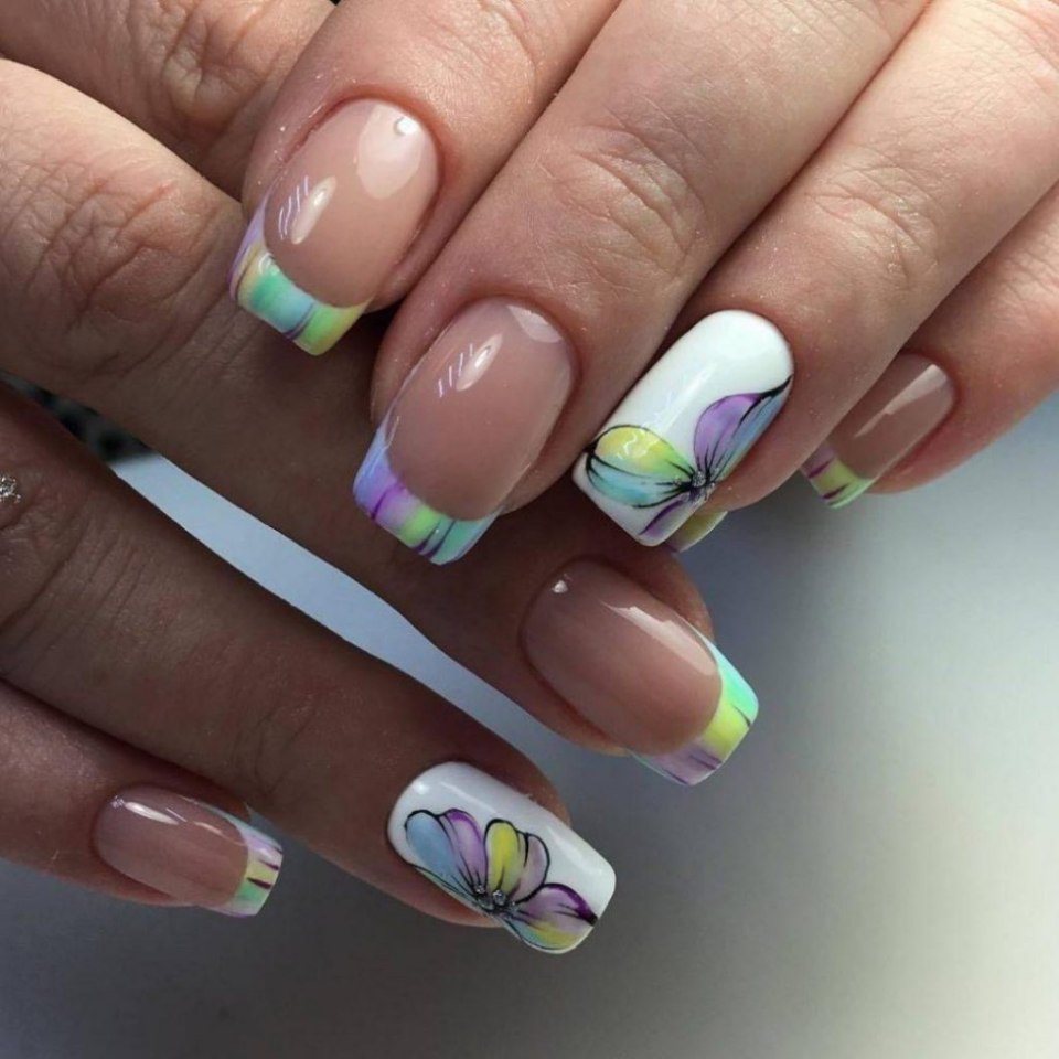 Маникюр дизайн ногтей френч цветной (78 фото)