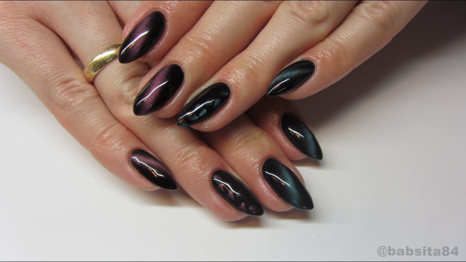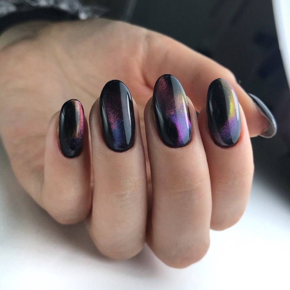 Кошачий глаз на черном фоне маникюр (76 фото)