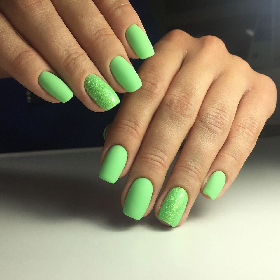 Салатовый цвет сочетание с другими цветами ногти (77 фото)