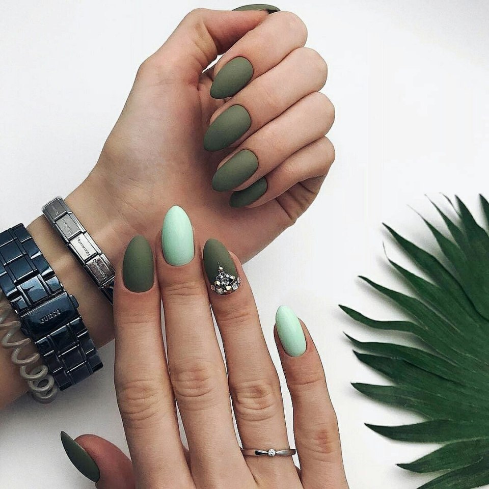 Зелёный маникюр 2021 миндаль