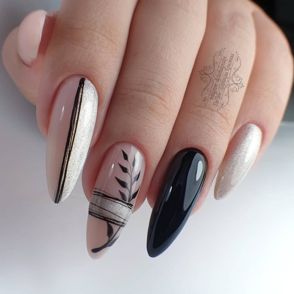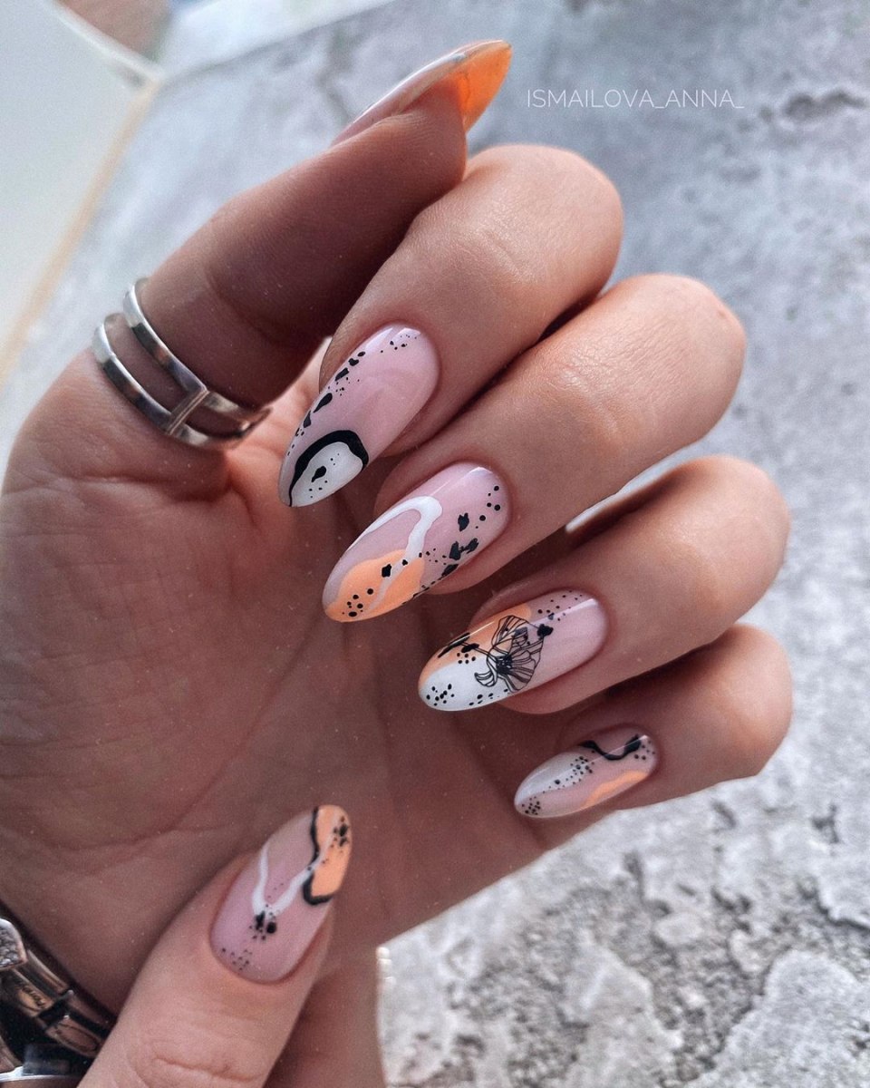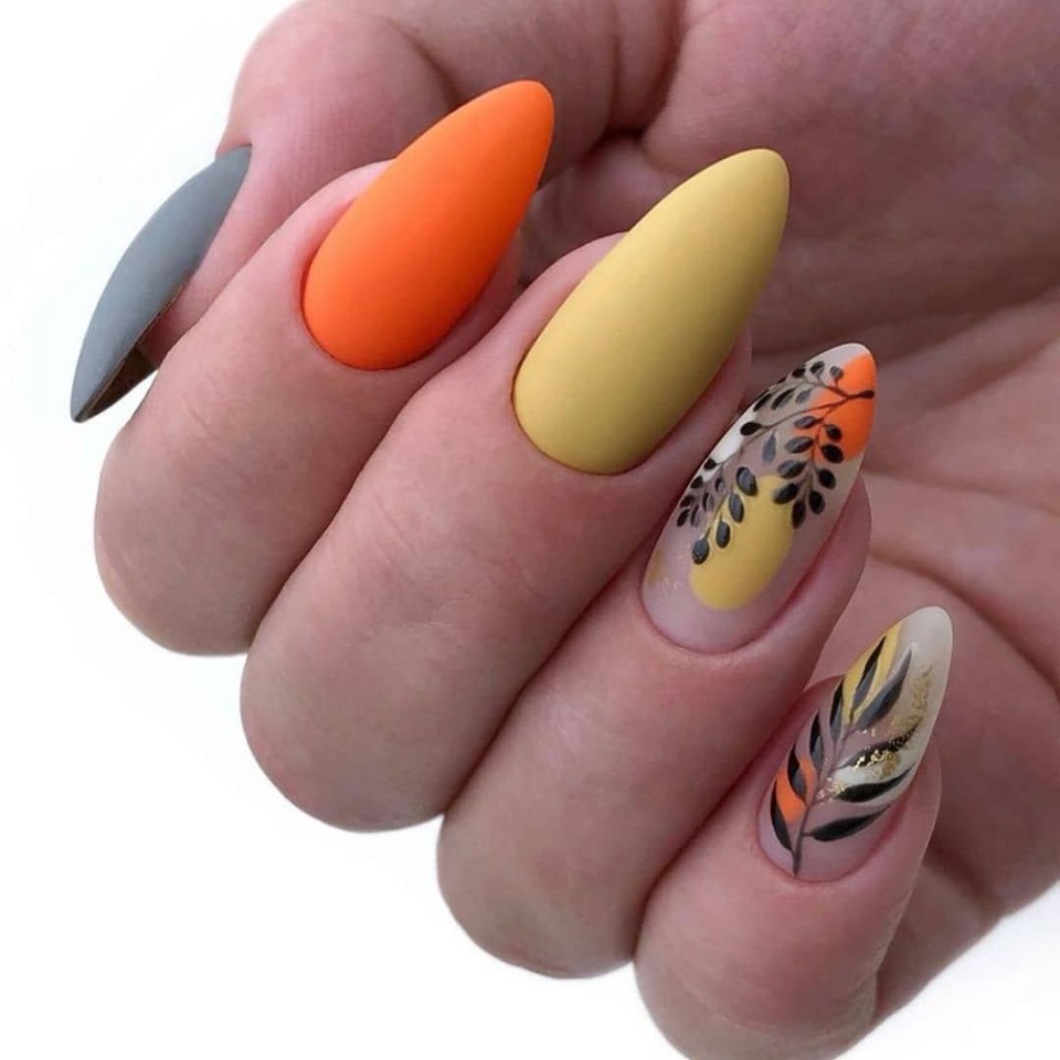 Дизайн ногтей на миндальную форму осенний кошки (77 фото)